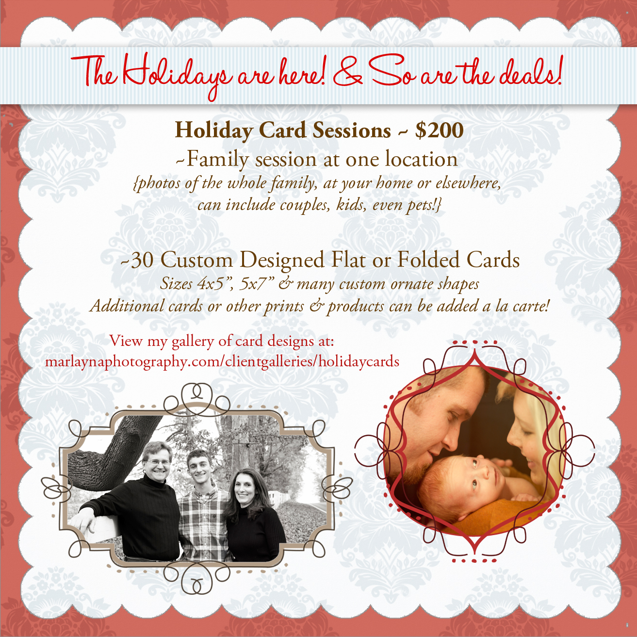 Hey! So for those of you that haven’t seen on my facebook page yet, I’m offering a Holiday Session & Card Special! (By the way, did I mention it’s my birthday today? So you should totally take the opportunity to give me this free birthday gift by liking the page so you can see all the updates—right herrrre! :) )
