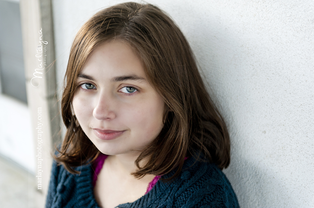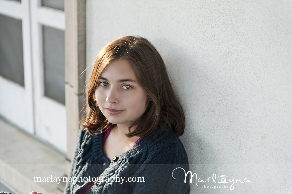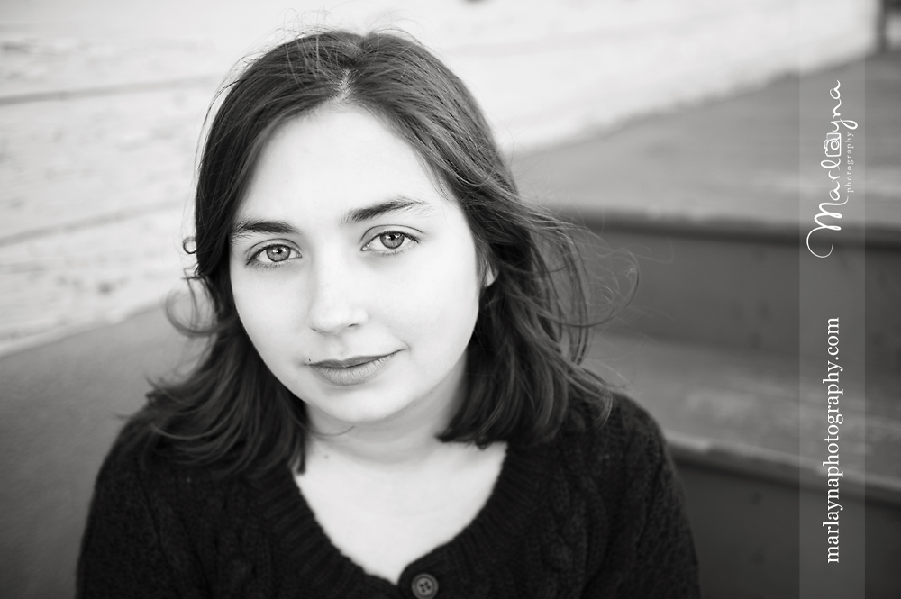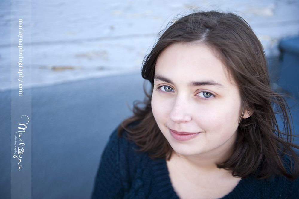It’s funny how you never know what will end up working perfectly. I asked Jackie to sit a second on these blue stairs at this blue shop along Main St & I really love how they turned out. The muted blue is so perfect with her eyes and sweater I think =]