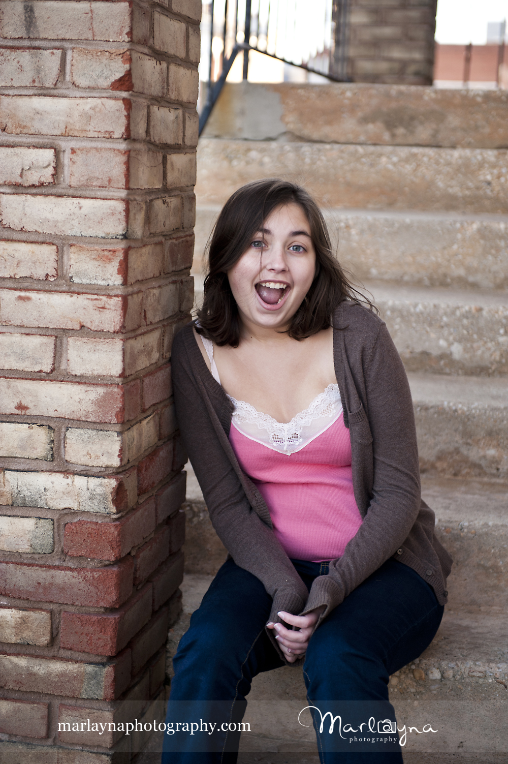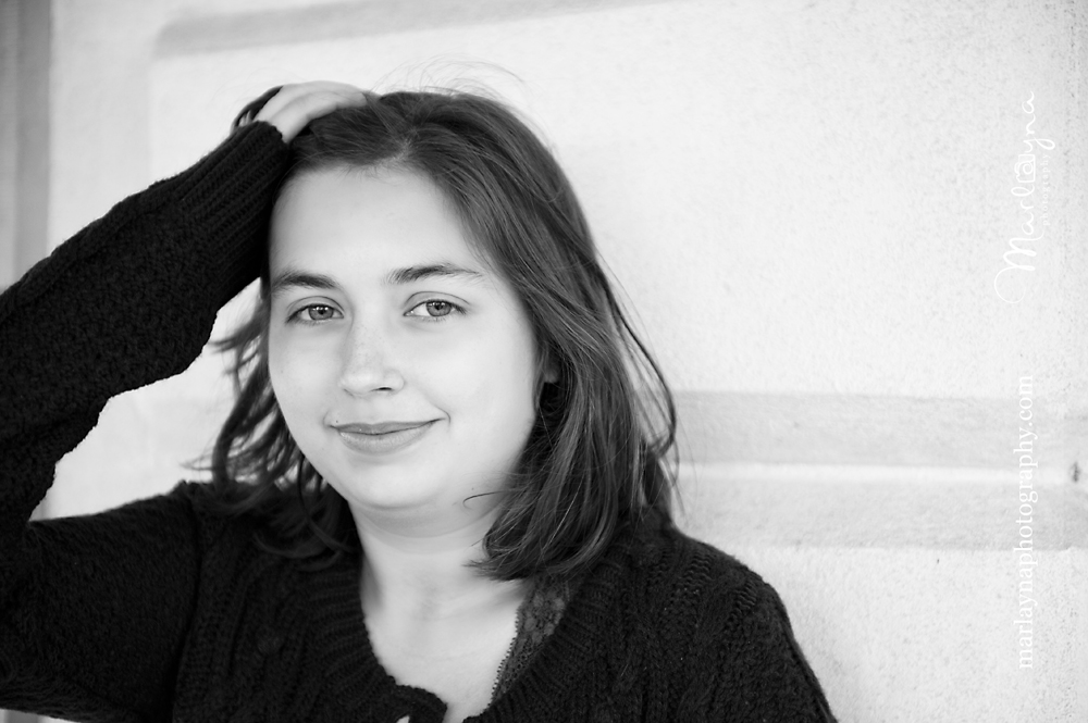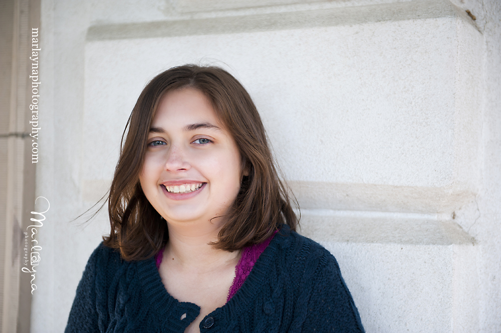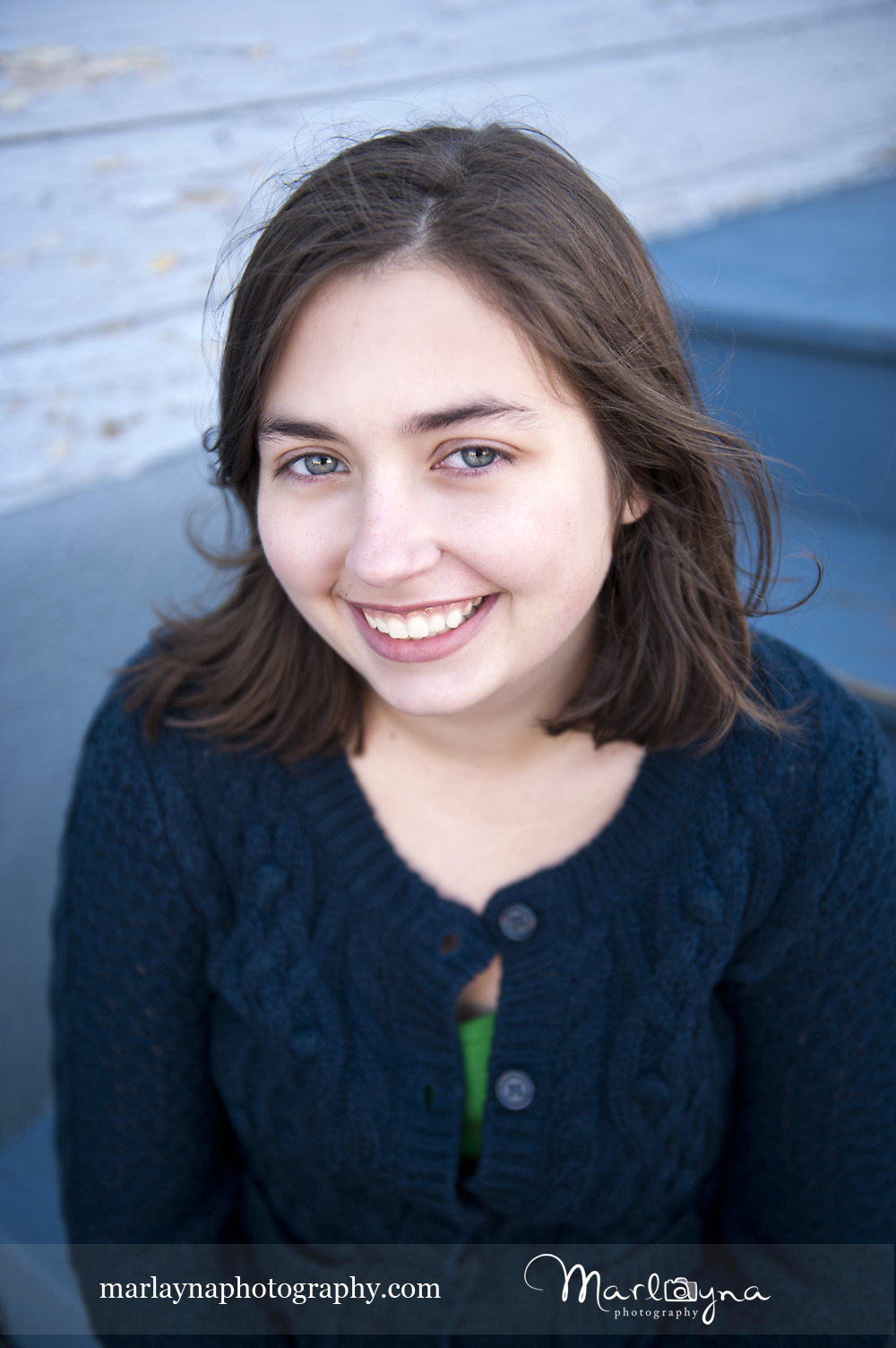 It’s funny how you never know what will end up working perfectly. I asked Jackie to sit a second on these blue stairs at this blue shop along Main St & I really love how they turned out. The muted blue is so perfect with her eyes and sweater I think =]